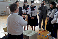 災害とは何かというテーマで講演を行った。生徒からは、実際に災害が起きた際の対処方法について質問が寄せられた。